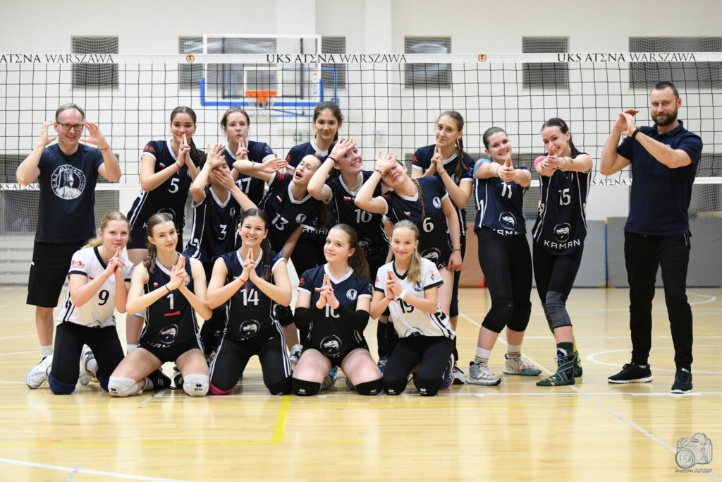 Dwa dni później, 13 stycznia, to my gościliśmy na swoim terenie zawodniczki Sparty. Wszyscy zdawali sobie sprawę z wagi tego spotkania, nasza wygrana oznaczała awans UKS Ateny Kaman Warszawa do I ligi. W naszym zespole od samego początku było widać skupienie i ogromną motywacje. Bardzo dobrze weszliśmy w spotkanie i wygraliśmy pierwszego seta 25:18. Druga odsłona meczu również przebiegała pod nasze dyktando i została wygrana przez nasze siatkarki 25:16. Ostatnia partia meczu to dla nas możliwość zakończenie spotkania i wygrania fazy play-off, dla naszych przeciwniczek walka o utrzymanie w grze. Była to najbardziej zacięta partia tego meczu, jednak z happy-endem. Nasze zawodniczki wygrały ją 25:23 i tym samym całe spotkanie 3:0. Takim efektownym wynikiem wygrały całą fazę play-off i awansowały do I ligi mazowieckiej. Kadetki wywalczyły historyczny awans do I ligi! Jeszcze nigdy w historii Ateny, II zespół, a co dopiero III nie awansował do I ligi. Sukces tym większy, że wywalczyły go nasze młodziczki!