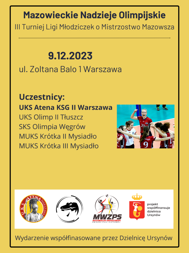 W najbliższą sobotę 9 grudnia na Ursynowie odbędzie się turniej młodziczek pn. Mazowieckie Nadzieje Olimpijskie.