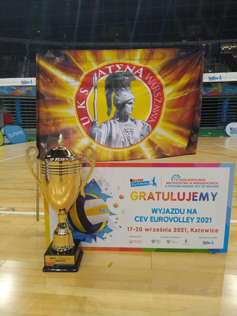 Warunkiem uczestnictwa w 27. Wielkim Turnieju Kinder Joy of Moving było zajęcie pierwszego lub drugiego miejsca w turniejach wojewódzkich. Atenki do Gliwic jechały jako Mistrzynie Mazowsza. Turniej finałowy rozgrywany był na pięknym obiekcie Arena Gliwice, który składa się z dwóch hal – Areny liczącej 17 tys. miejsc dla widzów oraz „hali treningowej”, w której mieści się 12 boisk do minisiatkówki. Atenki rozpoczęły turniej rozgrywając mecze na obiekcie treningowym. Ogrom hali, hałas z boisk oraz trybun zrobił na dziewczynach duże wrażenie. Po raz pierwszy graliśmy przy udziale publiczności i po raz pierwszy na takim obiekcie. Dziewczyny do pierwszego meczu podeszły bardzo nerwowo. Po dwóch setach na tablicy wyników widniał wynik 1:1. Oba zespoły grały nierówno, a nam ciężko było zagrać wytrenowane warianty. Dopiero w tie-breaku udało się opanować stres i narzucić swój styl gry. Mocne zagrywki, dokładne przyjęcia, udane kiwki i ataki zostały z nami do końca pierwszego etapu. W dwóch kolejnych meczach graliśmy pewnie i odważnie, co dało nam szybkie zwycięstwa w stosunku 2:0. Pierwszy etap zakończyliśmy trzema wygranymi.
