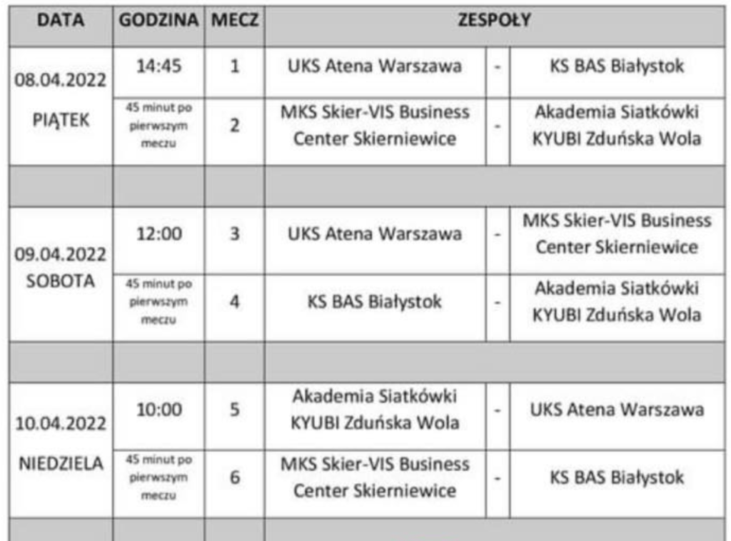 - Miejsce rozgrywania zawodów: Hala Sportowa LXII Liceum Ogólnokształcącego Mistrzostwa Sportowego im. Generała Broni Władysława Andersa przy ul. Konwiktorskiej 5/7 w Warszawie